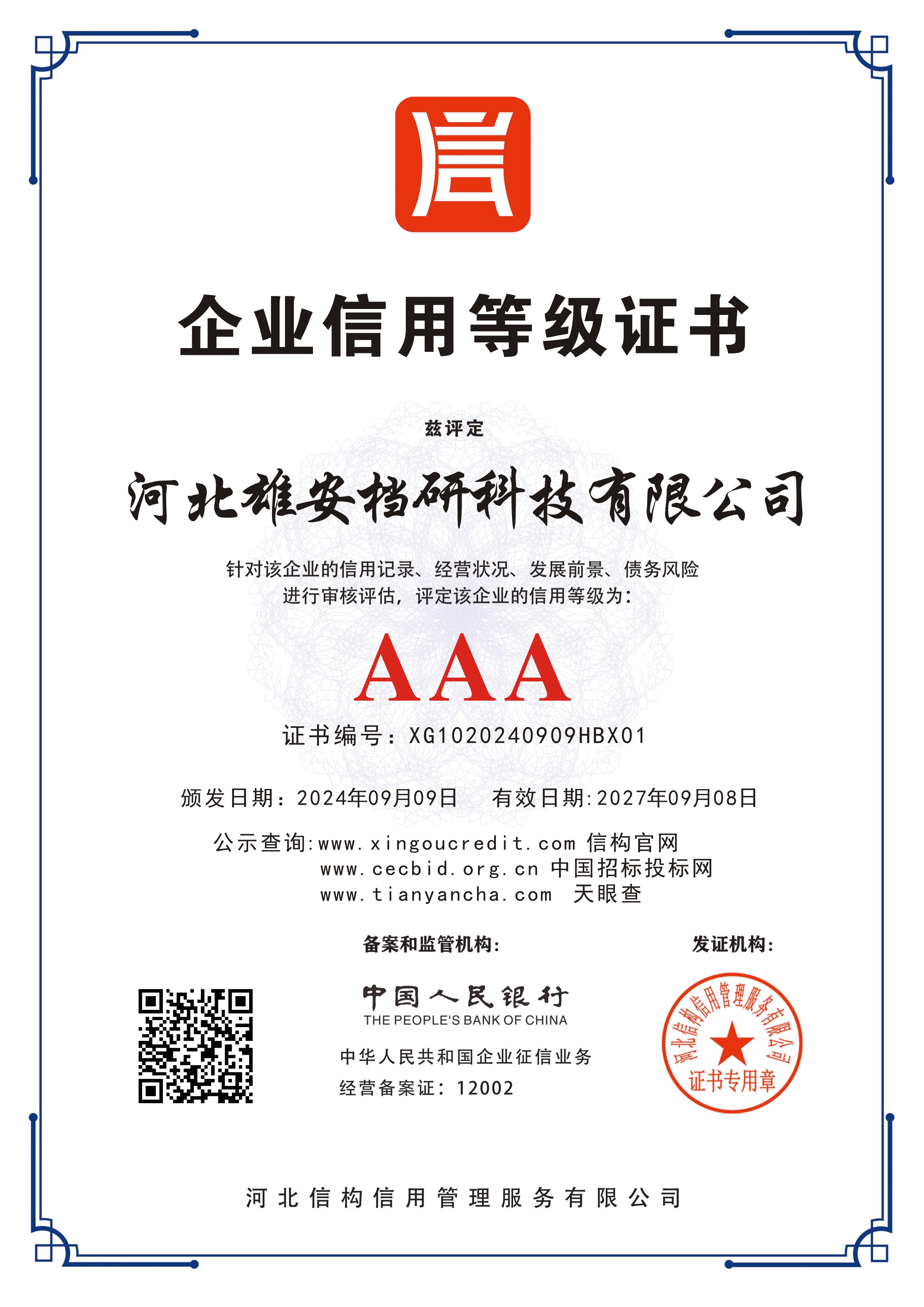 企业信用等级证书